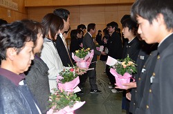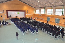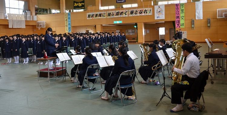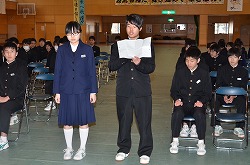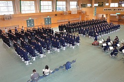 11日(金)の13:35より、16日に予定している第69回卒業証書授与式の予行を行いました。全校生徒が本番と同じ気持ちで真剣に取り組みました。素晴らしい歌声が、体育館いっぱいに響き渡りました。予行ですが、涙をこらえていた先生や涙を流していた生徒もいました。予行の後は、三年生が謝恩会を行ってくれました。全員の教職員に、心のこもった手紙と鉢植えのミニバラをプレゼントしてくれました。本当に、ありがとうございました。