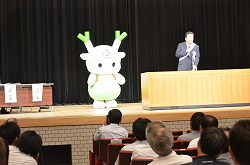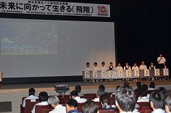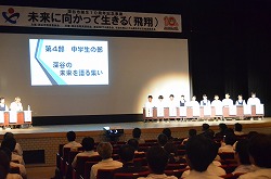 第2部の中学生の部「深谷の未来を語る集い」では、本校を代表して生徒会長SH君が「きれいな深谷」「ふれあいあふれる深谷」「愛着が持てて世界に誇れる深谷」について堂々と発表してくれました。また、本校の「立志式」「あいさつ日本一」「Happy Fri.」などの取組についての発表も行いました。さらに、「2020年に花園地区にできる商業施設を、世界一にしたいです。」と発表し、郷土愛を感じることができました。素晴らしい発表、本当にありがとうございました。