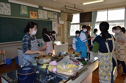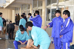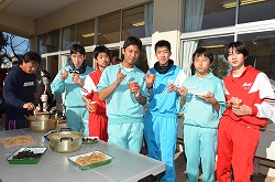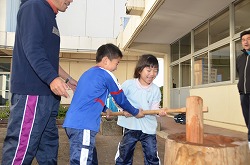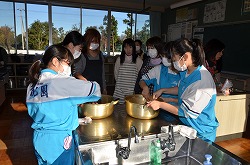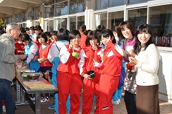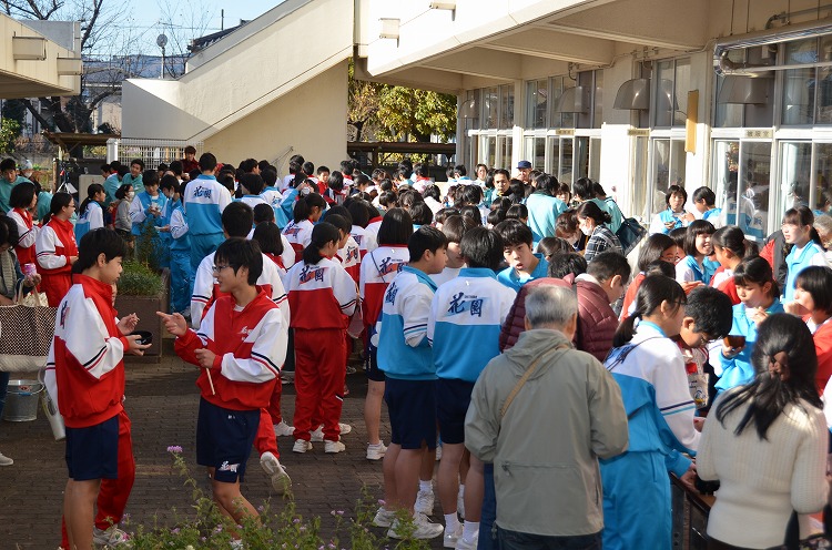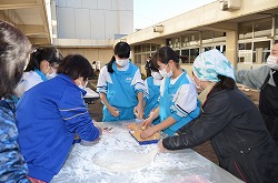 本日、更生保護女性会、地域の方々、学校応援団、PTAの方々のご協力を得て、170名の生徒たちが参加して、盛大にもちつき大会を実施しました。もち米60kgを4つの臼でつき、あべかわもち、からみもち、大福、お汁粉、黄な粉もちを作りました。つきたてのもちはとても美味しく、思い出に残るもちつき大会になりました。みなさま、本日はありがとうございました。