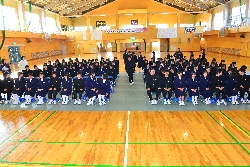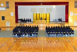生徒会引き継ぎ式を行いました。新生徒会の役員のみなさん、花園中学校をよりよくするためにがんばっていきましょう。旧生徒会の役員のみなさん、今までありがとうございます。