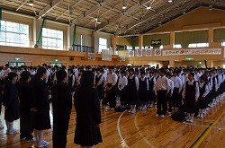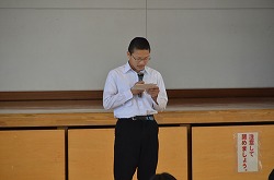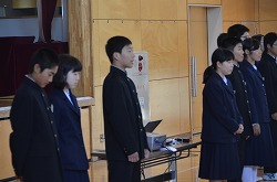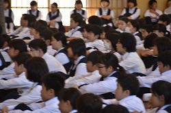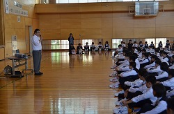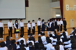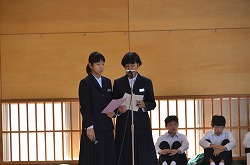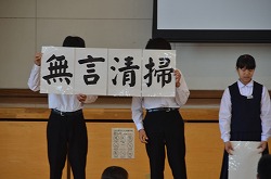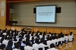 生活向上委員会と生徒会本部役員による「全校あいさつ運動」実施後、清掃委員会の皆さんが清掃の取組についての発表を行いました。普段の清掃では見逃してしまいそうな汚れや場所について、映像を用いて詳しく説明してくれました。「清掃は人の心を映す鏡」と、最後にまとめまてくれました。清掃委員会の皆さん、ありがとうございました。