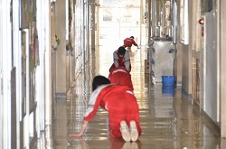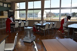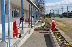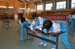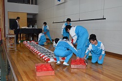 16日(水)に挙行される、卒業式の準備を行いました。3年生への感謝の気持ちを込めて、2年生は体育館内の整備、1年生は校舎内と外回りの美化を行いました。全員が熱心に取り組んでいました。
