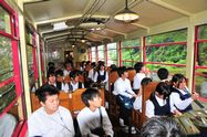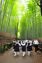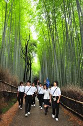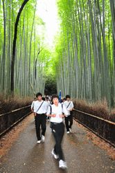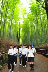 1組は、保津川のトロッコ電車と嵯峨野見学でした。あいにく保津川は台風の影響で濁流となっていました。沿線の青紅葉がとてもきれいでした。嵯峨野の竹林はやはり美しいです。