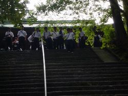 3日目は、雨も上がり曇りの一日でした。朝食時に学習班から成績優秀者への表彰がありました。優秀者には豪華景品が授与されました。その後、クラスごとに出発しました。