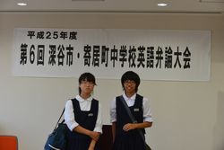 9月10日、第6回 深谷市・寄居町英語弁論大会が、深谷市立教育研究所で開催されました。本校からは、KさんとIさんが出場し、熱弁しました。2人とも優良賞を受賞しました。