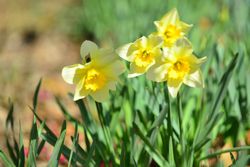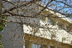 花園中のソメイヨシノが、ちらほら咲き出しました。おそらく3月20日に開花したと思います。そのほか、先生と生徒が育てた花々が咲きそろっています。スイセン、ツバキ、サクラソウ、ストック、パンジー、ポピー等々