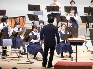 吹奏楽部が、8月20日(日)、花園文化会館アドニスで開催された、『かわもとウインドアンサンブル第31回サマーコンサート』に参加しました。当日は、8月3日(木)に行われた埼玉県吹奏楽コンクール北部地区大会で金賞を受賞し、6日(日)の県大会で演奏した「時つ風~我が智謀の剣~」と、1年生のデビューとなる「マーチ・シャイニング・ロード」の2曲を披露しました。どちらも素晴らしい演奏で、会場の方から大きな拍手をいただきました。吹奏楽部の皆さん、ご苦労様でした。