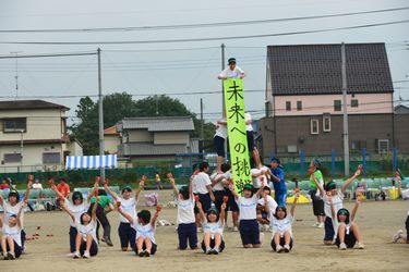 午後の応援合戦 (赤団、青団、黄団、緑団)
