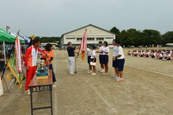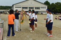 生徒会引き継ぎ式を行いました。新生徒会の役員のみなさん、花園中学校をよりよくするためにがんばっていきましょう。旧生徒会の役員のみなさん、今までありがとうございます。
