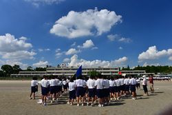 花園中の応援団の歴史は古いそうです。今年も、赤団(1年1組 2年1組 3年1組)、青団(1年2組 2年2組 3年2組)、緑団(1年3組 2年3組 2年4組 3年3組)のそれぞれの応援練習が始まりました。体育祭では、それぞれ団結して応援を繰り広げます。