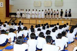 学総地区予選を勝ち抜き、県大会に出場する部活動の壮行会を実施しました。