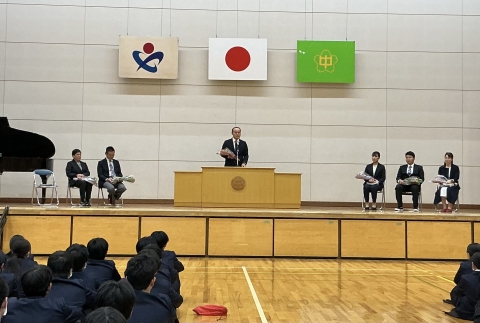 生徒会本部役員が、自治的な活動・専門委員会活動・学校行事について、説明しました。花園中の素晴らしさが伝わってきました。
