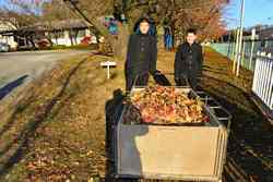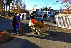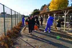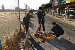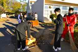 1年生の生徒や花咲学級の生徒が、ボランティアで落ち葉清掃をしてくれました。北風の強かった翌日、落ち葉がたくさん落ちていました。