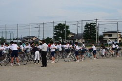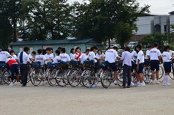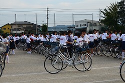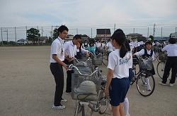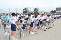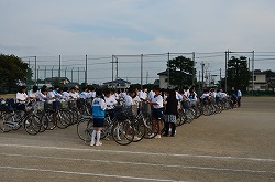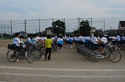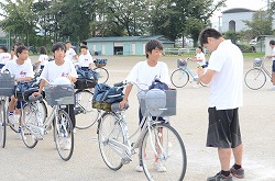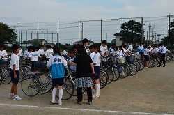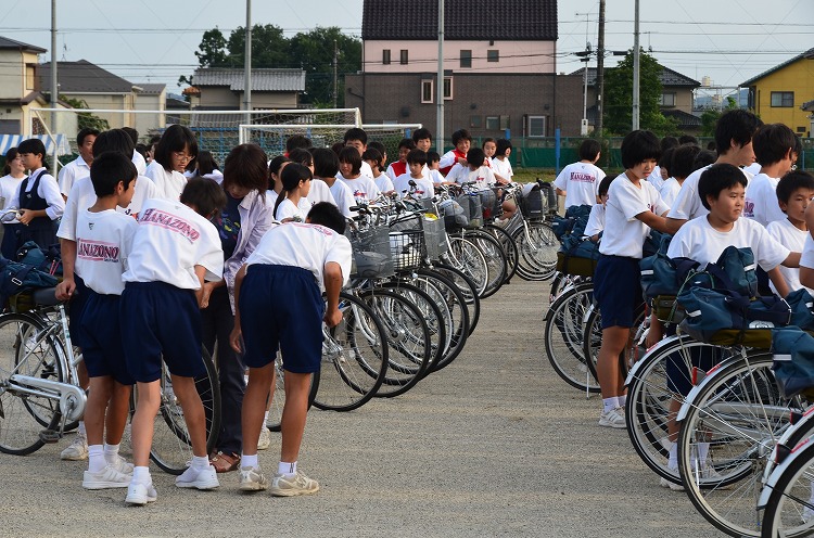 本日の放課後、校庭で全校自転車点検を実施しました。各クラス1列に自転車を並べ、担任と安全委員とで点検を行いました。交通事故にあわないように、安全に自転車を運転してください。