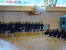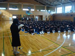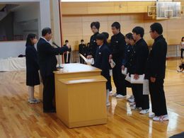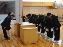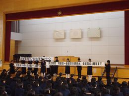 生徒会引き継ぎ式を行いました。新生徒会の役員のみなさん、花園中学校をよりよくするためにがんばっていきましょう。旧生徒会の役員のみなさん、今までありがとうございます。