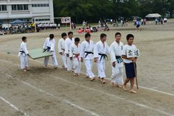 午後の部は、3年生部員による部活動行進から始まりました。写真順に①野球部、②ソフト部、③サッカー部、④陸上部、⑤テニス部男子、⑥テニス部女子、⑦バスケット部男子、⑧バスケット部女子、⑨卓球部男子、⑩卓球部女子、⑪柔道部、⑫剣道部、⑬生活部、⑭美術部、⑮吹奏楽部です。