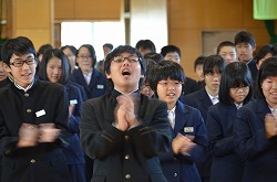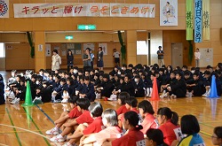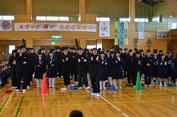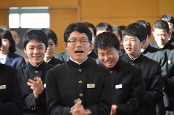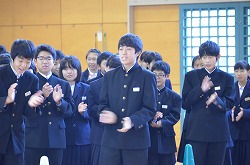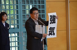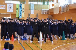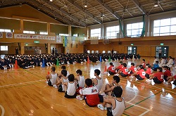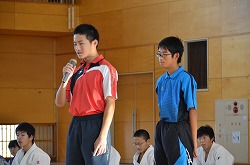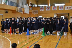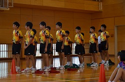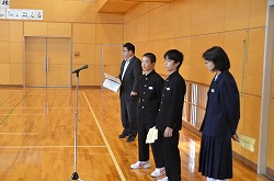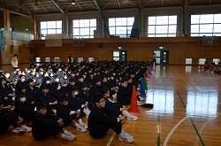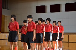 21日(金)の朝会で、新人県大会出場に向けての壮行会を行いました。県大会の出場を決めた駅伝部、男子ソフトテニス部、女子ソフトテニス部、柔道部、男子卓球部、女子卓球部の部長より、県大会に向けての力強い決意表明がありました。次に、県大出場者に向けて、心のこもったエールを全校で行いました。最後に校長先生より、今回の壮行会では「強気」という言葉をいただきました。県大会ではどんなときにも「強気」を持ち続け、今までの練習の成果を思う存分発揮してください。頑張ってください。