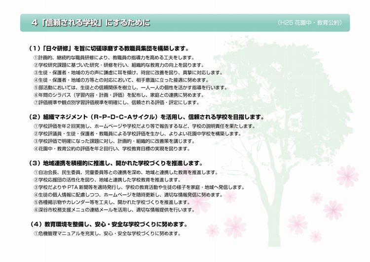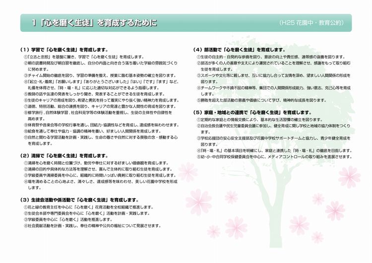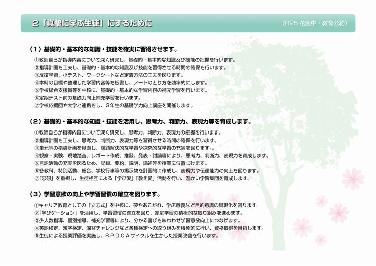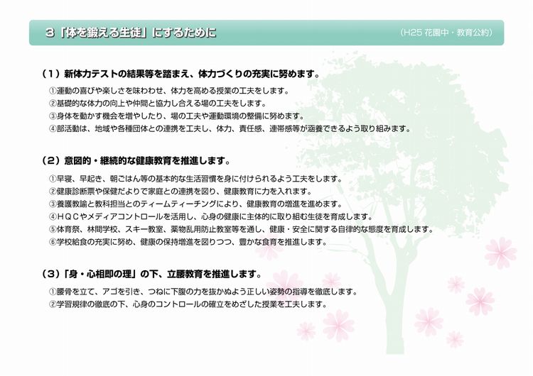 平成25年度 花園中学校 教育公約