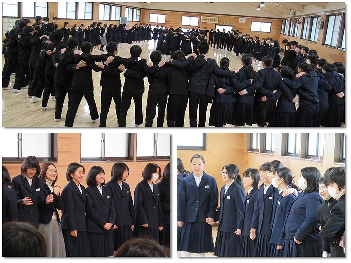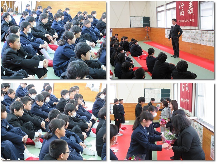 最後の学年集会が行われました。学年委員から先生方に感謝の気持ちを込めてサプライズも行われました。