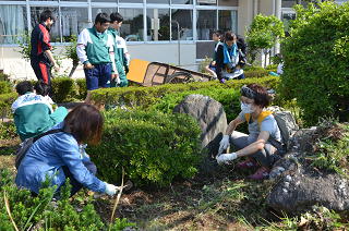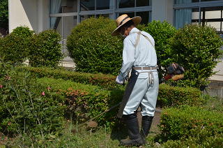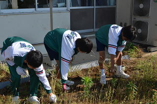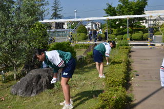 本日20日(土)、朝8時より2年生及びその保護者の皆様による奉仕作業(除草作業)が行われれました。校舎前の花壇周辺とテニスコート周りを中心に除草していただきました。朝から気温が上がり、暑い中での作業でしたが能率的に取り組み、1時間あまりで予定していた場所の除草がすべて終わりました。生徒及び保護者の皆様、ありがとうございました。