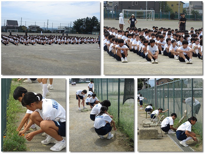 避難訓練後、除草作業を行いました。短時間でしたが、集中して行うことができました。