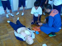 胸骨圧迫、人口呼吸、AEDを使った蘇生法を学ぶことができました。