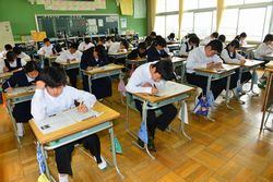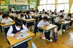 1年生は、初めての中間テストです。小学校と異なり、中学校は中間テストと期末テストを中心に評価をしていきます。1年生は勉強の方法等、まだ慣れていないと思いますが、「生活記録」に勉強の仕方などが詳しく載っていますので、参考にしてください。さすが2・3年生は、しっかりテスト勉強して(?)、テストに臨んでいました。(写真は、1-1~1-4、2-1~2-3、3-1~3-4)