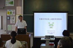 本日、花園小学校で「小中連携合同会議」を実施しました。前半では、花園小学校持田校長先生より「人権教育の現状と課題」についての講演をいただきました。人権感覚を育て、実践的な行動に移すことの大切さ改めて学ぶことができました。その後、花園幼稚園、花園小学校、花園中学校より、各校の「人権教育の現状と課題」についての発表を行いました。後半では、「学習部」「生活部」「教育相談部」「行事部」の4部会に分かれて、連携会議を行いました。大変充実した研修でした。