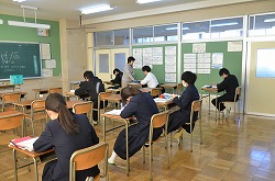 朝の7時30分より少人数教室で3年生の「朝の学習会」を実施しています。用意してあるプリントを行ったり、各自が用意したワーク等に取り組んでいます。寒くなってきましたので、風邪をひかないように注意してください。「頑張ってください」