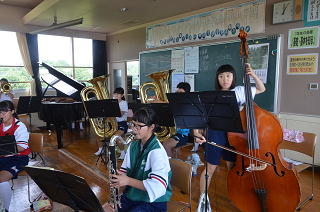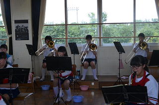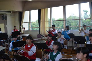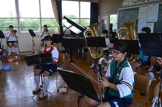 北部地区吹奏楽コンクールが、いよいよ明日2日(火)に迫ってきました。今日は、コンクール前の最後の仕上げとして、職員室にいる10名の先生方を招いてミニコンサートを行ってくれました。スローテンポの難しい曲を見事に演奏してくれました。明日の北部地区大会では、今までの練習の成果を発揮して、すばらしいハーモニーを会場いっぱいに響かせてください。