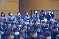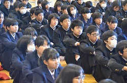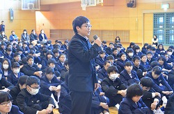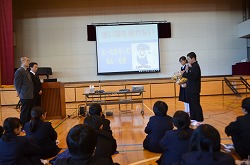 12月2日(金)、本校体育館に寄居警察 刑事課薬物銃器対策係長 松尾修一 警部補様、生活安全課 金子静夫 様をお迎えし、「薬物乱用防止教室」を実施しました。薬物は、私からの体に重大な影響を及ぼすだけでなく、他人にも危害を与えてしまうような恐ろしいものでることが理解できました。今日の話をしっかり頭に入れて、これからの生活に役立ててください。