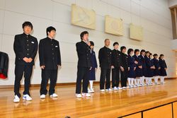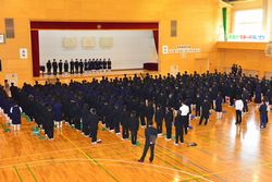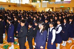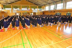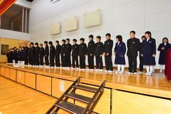 生徒会引き継ぎ式を行いました。新生徒会の役員のみなさん、花園中学校をよりよくするためにがんばっていきましょう。旧生徒会の役員のみなさん、今までありがとうございます。