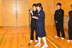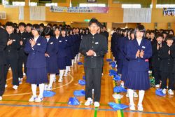 いつもながらの生活向上委員会の体育館前でのお出迎えと集会に先立ってあいさつ運動から始まった生徒集会。第1回目は、今年度の各専門医委員会の委員長から基本方針の発表がありました。正式には生徒総会で決定されますが、「花と緑とあいさつの花園中学校」を中核に、生徒会では、スイセンの球根を東北の支援として送る計画も進めています。また、それぞれの委員会では、花園中がより良くなるような取り組みを計画しています。