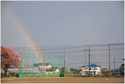 北からの寒気が入り、雷雨がありました。その後、美しい虹が出ました。二重に出ていました。太陽光に含まれるいろいろ色の屈折率が違うので虹ができるそうです。