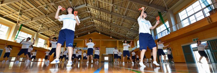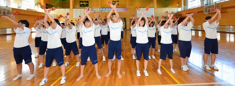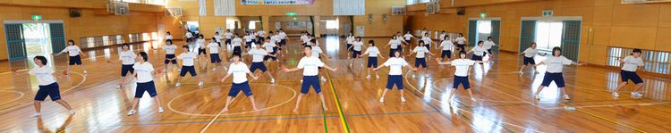 始業式の前日、1年、2年、3年の体育祭練習を実施しました。よさこいソーランの練習です。体育祭当日をお楽しみに!! (写真は3年生)