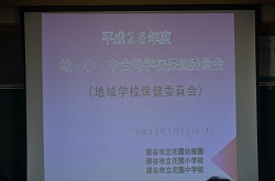 本日、花園小学校学校医 浅見寿夫先生、花園中学校学校医 大澤洋之先生、花園幼・小・中学校学校眼科医 神足吉明先生、花園中学校学校歯科医 澤邊英三郎先生をお迎えし、第2回花園幼・小・中学校合同学校保健委員会を開催しました。本日のテーマ『地域で取り組もう!メディアコントロール運動』~メディアコントロール5か条の取組について~のもと、中学校保健委員会より取組の結果発表を行い、幼稚園・小学校・中学校の保護者の方々より感想や意見をいただき、最後に4名の先生方より指導及び助言をいただきました。これからも、幼稚園・小学校・中学校がひとつになり、子どもたちの健全な成長に取り組んでいきたいと思います。本日は、ありがとうございました。