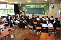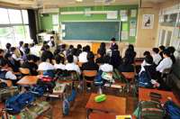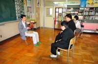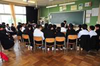 花園地区の読書サークル3団体から、読み聞かせボランティアの派遣をいただき、1年生3クラス及び花咲学級の生徒に読み聞かせをしていただきました。花咲学級では、「ハチドリのひとしずく」、はたこうしろう作「なつのいちにち」、1年1組では、片山清司作「舎利」、1年2組では、「つるのよめさま」、1年3組では、宮澤賢治作「雨ニモマケズ」、夏目漱石作「吾輩は猫である」の読み聞かせをしていただきました。生徒は真剣に聞き入っていました。