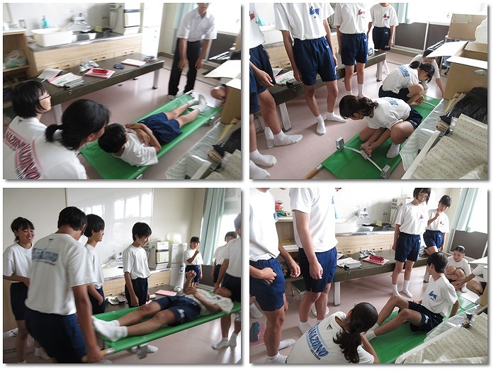 今日は担架を使って緊急時の対応について確認をしました。
