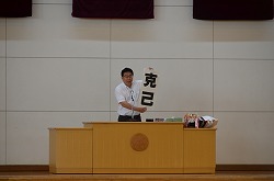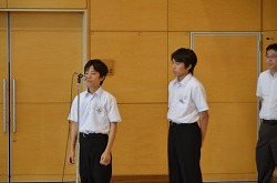 14日(火)、生徒集会で21日より行われる学校総合大会地区予選の壮行会と賞状伝達を行いました。壮行会では、各部の部長より大会に向けた決意表明、コンクールや作品制作に向けた意気込みなどの発表がありました。その後、1・2年生より3年生に向けてエールを送りました。また、校長先生より、学総大会に向けて「克己」と提示され「意思の力で、自らの欲望や邪念に打ち勝ってほしい」と話されました。壮行会後、賞状伝達を行いました。