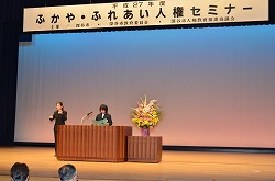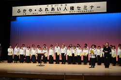 本日13時より、花園文化会館アドニスで「ふかや・ふれあい人権セミナー」が開催されました。深谷市内の小中学校代表者8名が人権作文を発表しました。本校からは、2年生のTMさんが出場し、『「個性」の大切さ』をテーマとした人権作文を発表しました。一人一人の個性を認め合い、仲間として尊重し合うことの大切さを堂々と発表しました。とても素晴らしかったです。
