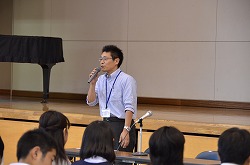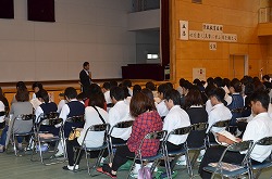 熊谷西高等学校、熊谷商業高等学校、寄居城北高等学校、東京成徳深谷高等学校、本庄東高等学校の先生をお呼びして、5・6校時に本校体育館で高等学校説明会を実施しました。各校の特色や入試情報などを丁寧に説明していただきました。雨の中でしたが、お越しいただき誠にありがとうございました。その後、三学年主任より「平成27年度入試について」の説明がありました。本日の説明内容を進路選択の貴重な情報として生かしてください。