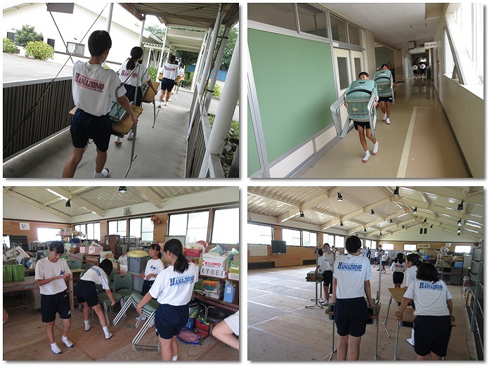 本日も大規模改修のための荷物移動を行いました。協力してくれたみなさん、ありがとうございました。全体で説明があったように、夏休み中は改修のため、本校舎内に入れない、水道が二カ所しか使用できない、通行不可な部分がある等、ご迷惑をおかけすることが多いかと思いますが、ご協力お願いいたします。