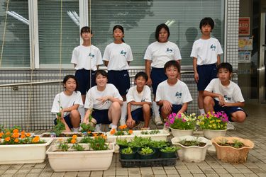 花と緑の教育主任が中心となり、緑化委員の生徒たちが種から育てたペチュニアやマリーゴールドを飾っていただくために、花園文化会館にお持ちしました。会館を訪れた皆さんが喜んでくださるとうれしいです。