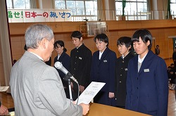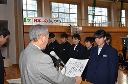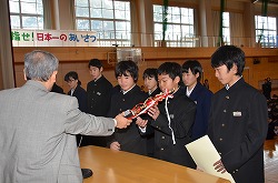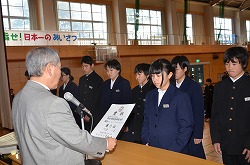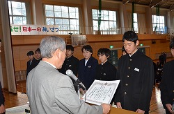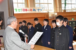 本日の4校時、表彰・冬季休業前全体指導を行いました。表彰では、総勢120名の生徒に、賞状の伝達を行いました。この賞状の多さは、花中生の活躍の賜だと思います。賞状伝達後には、①冬休みの生活について、②安全について、③健康な生活についての説明がありました。健康に注意し、交通事故に遭わないよう、冬休みを過ごしてください。