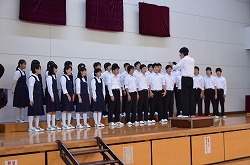 1年生が3・4時間目、2年生が1・2時間目、3年生が5・6時間目に体育館でプレ合唱を行いました。アドニスで実施される校内音楽会の順番で、各学級と学年全体の合唱を行いました。他のクラスの合唱を聴くことにより、さらに頑張ろうとする気持ちが芽生えたと思います。四日後の校内音楽会、楽しみにしています。