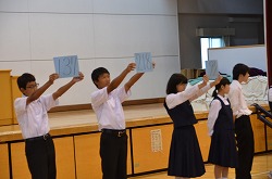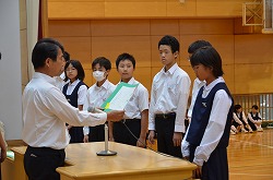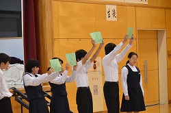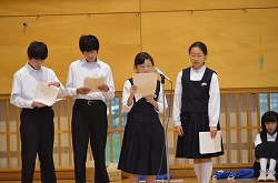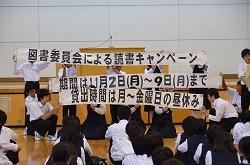 本日、図書委員会の生徒集会を実施しました。はじめに、図書室からの貸出冊数の多かった3クラスと5人の生徒へ賞状を伝達しました。次に、「ありがとうの手紙」の発表を行いました。最後に、図書委員会より「図書キャンペーン(11/2~11/9)」についての説明がありました。秋は読書の季節です。多くの本を読みましょう。