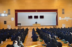 本日の全校朝会は、校長先生より「成功の秘訣」をテーマに講話をいただきました。東井義雄先生の詩集より「小さな勇気こそ」の朗読のあと、「人間にはだれでも二面性がある。【小さな悪魔】を抑える【小さい勇気】をもって生活することで、正しい自分が頑張れるようになり、それこそ成功の秘訣である」と話されました。最後に、マシュマロテストの結果を引用して、自分をコントロールすることの大切さを話されました。みなさん、自分の気持ちを自分の力でコントロールして、自分自身を向上させていきましょう。