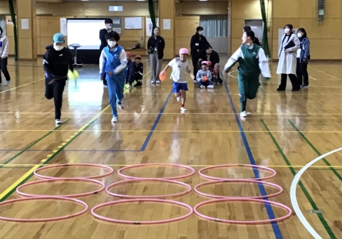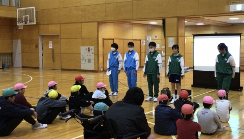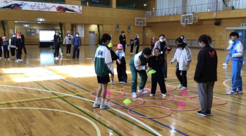 本日、小学校、支援学校から児童が来校し、中学生と体育館で交流しました。自己紹介・ビンゴリレー・Tボールを行い、子どもたちはお互いに声をかけながら楽しい時間を共有しました。本校生徒が小学生に気を配りながら活躍していました。