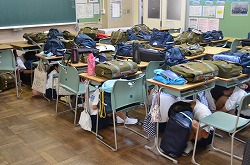 22日(金)16時、Jアラートが発信されたことを想定した避難訓練を実施しました。校内放送で、Jアラートの