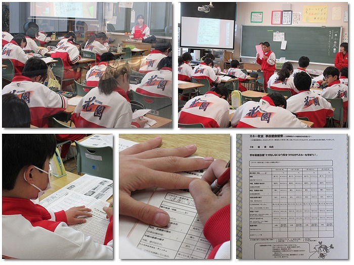 1年生はスキー教室に向けて、臨時の健康観察を明日から行いますので、毎朝の検温をお願いします。